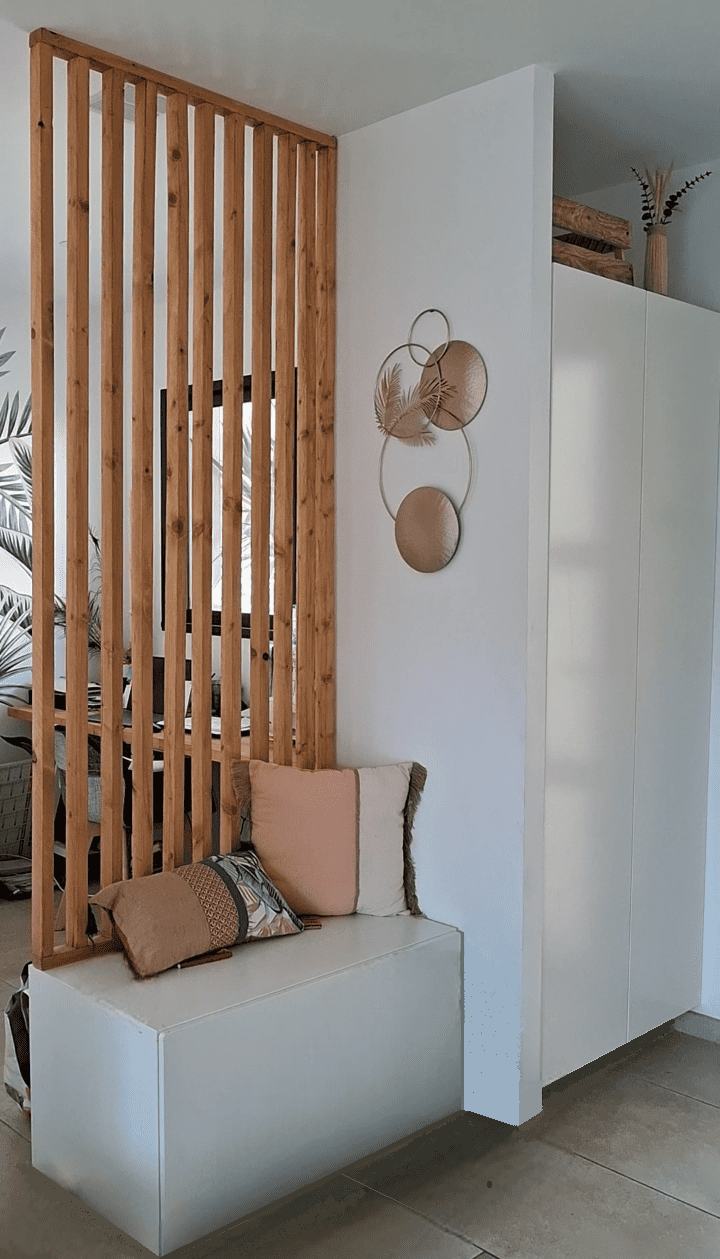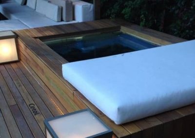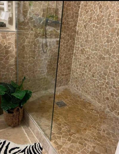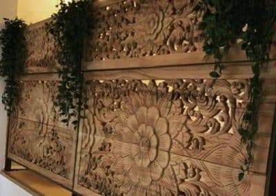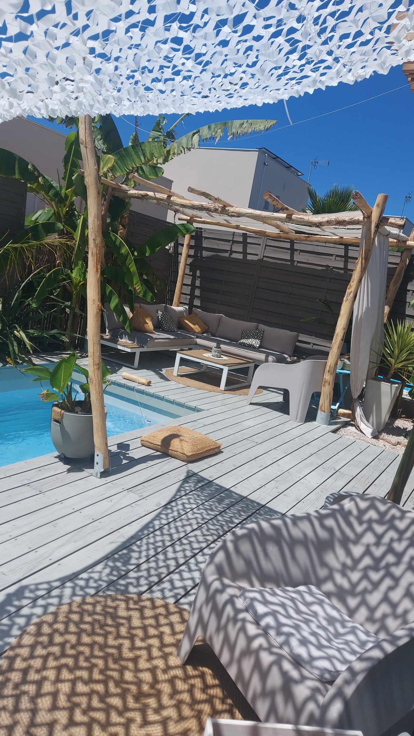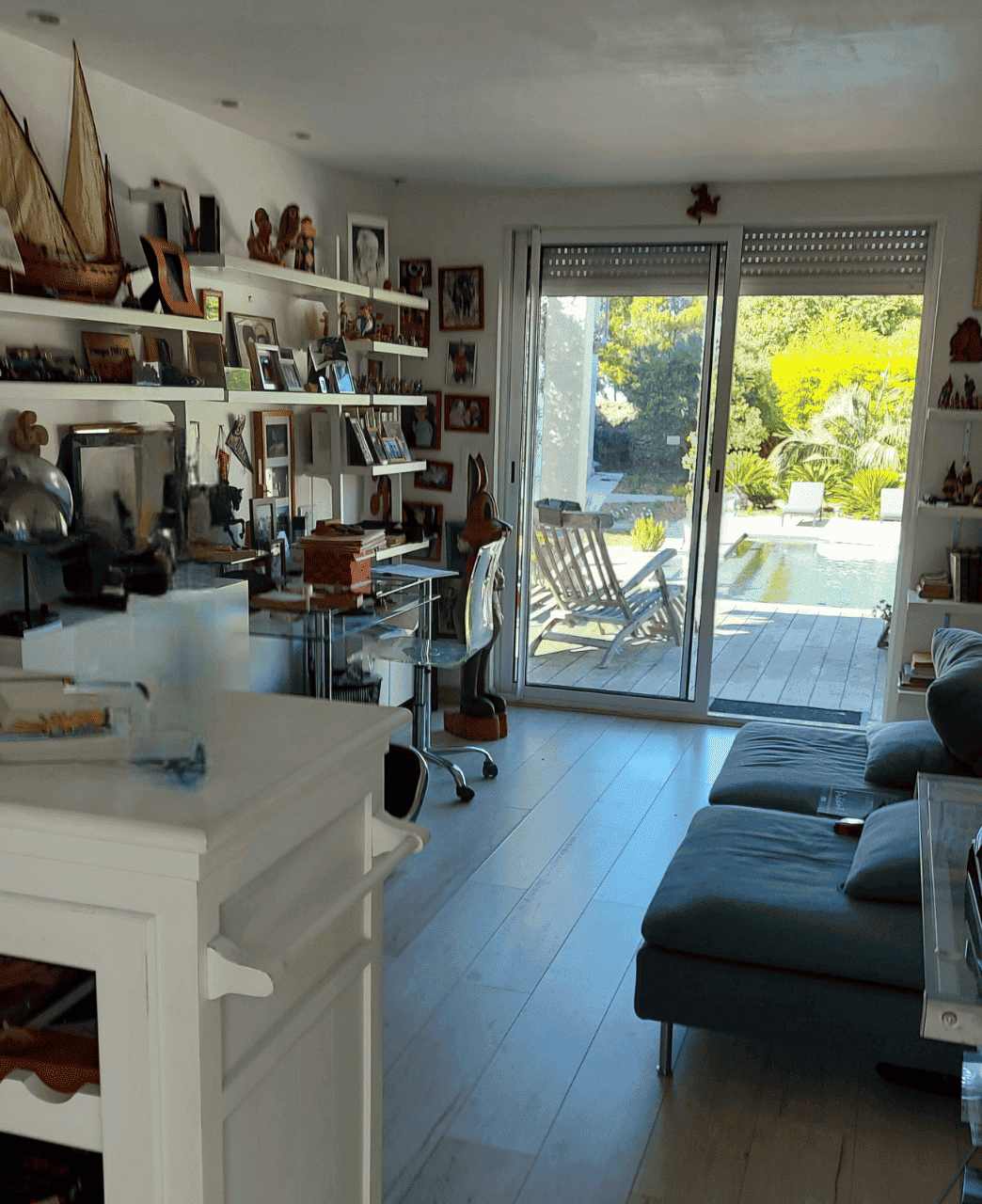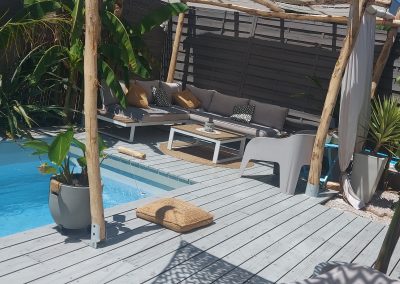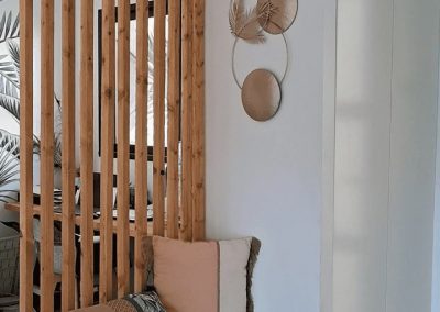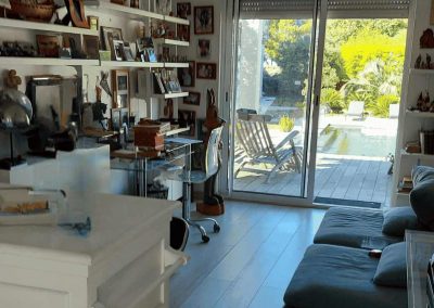 Missions : création de meubles et niches sur mesure, (Mobiliers chinés aux brocantes de Pézenas), peinture murale en trompe l’œil, pergola en douglas …